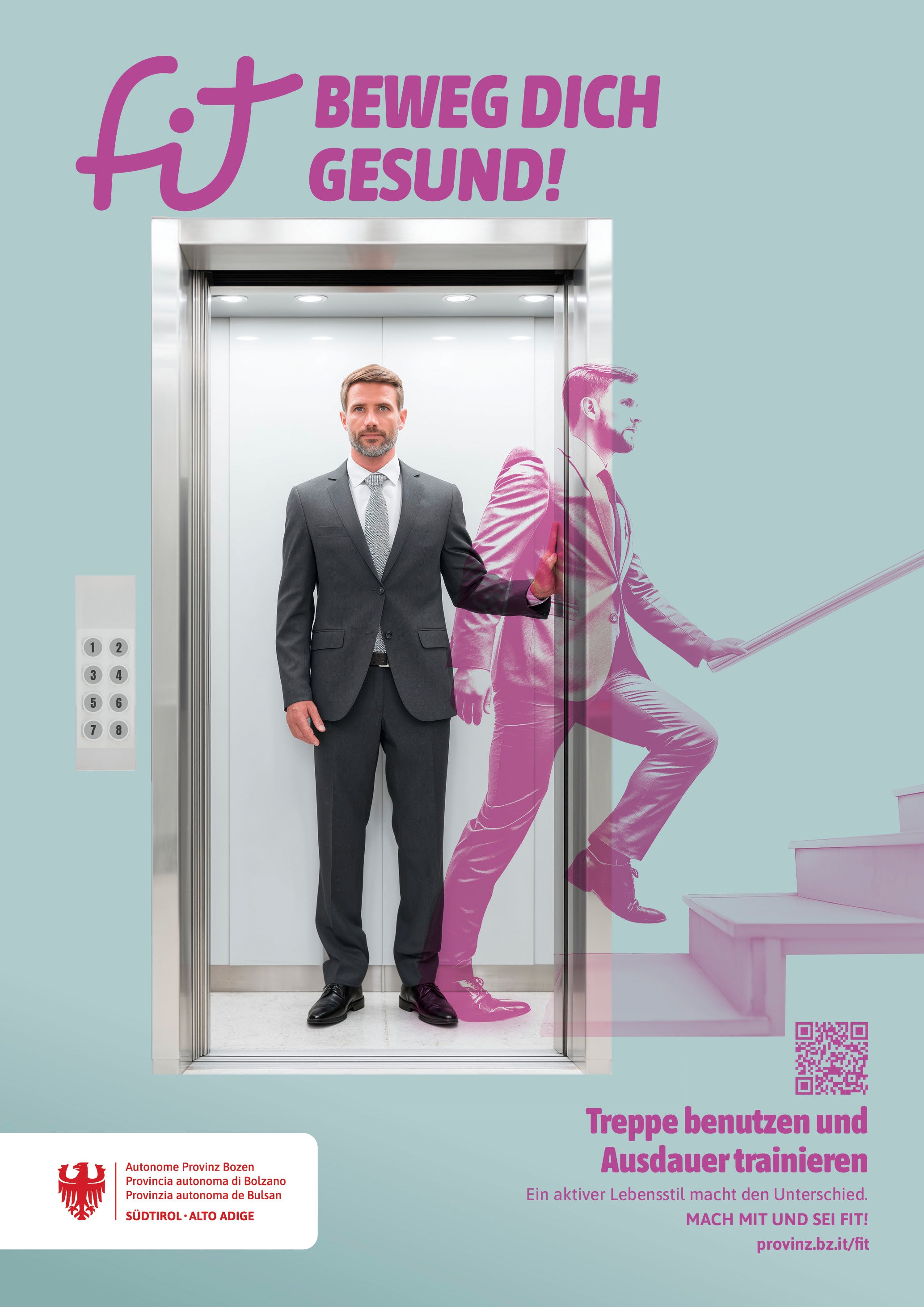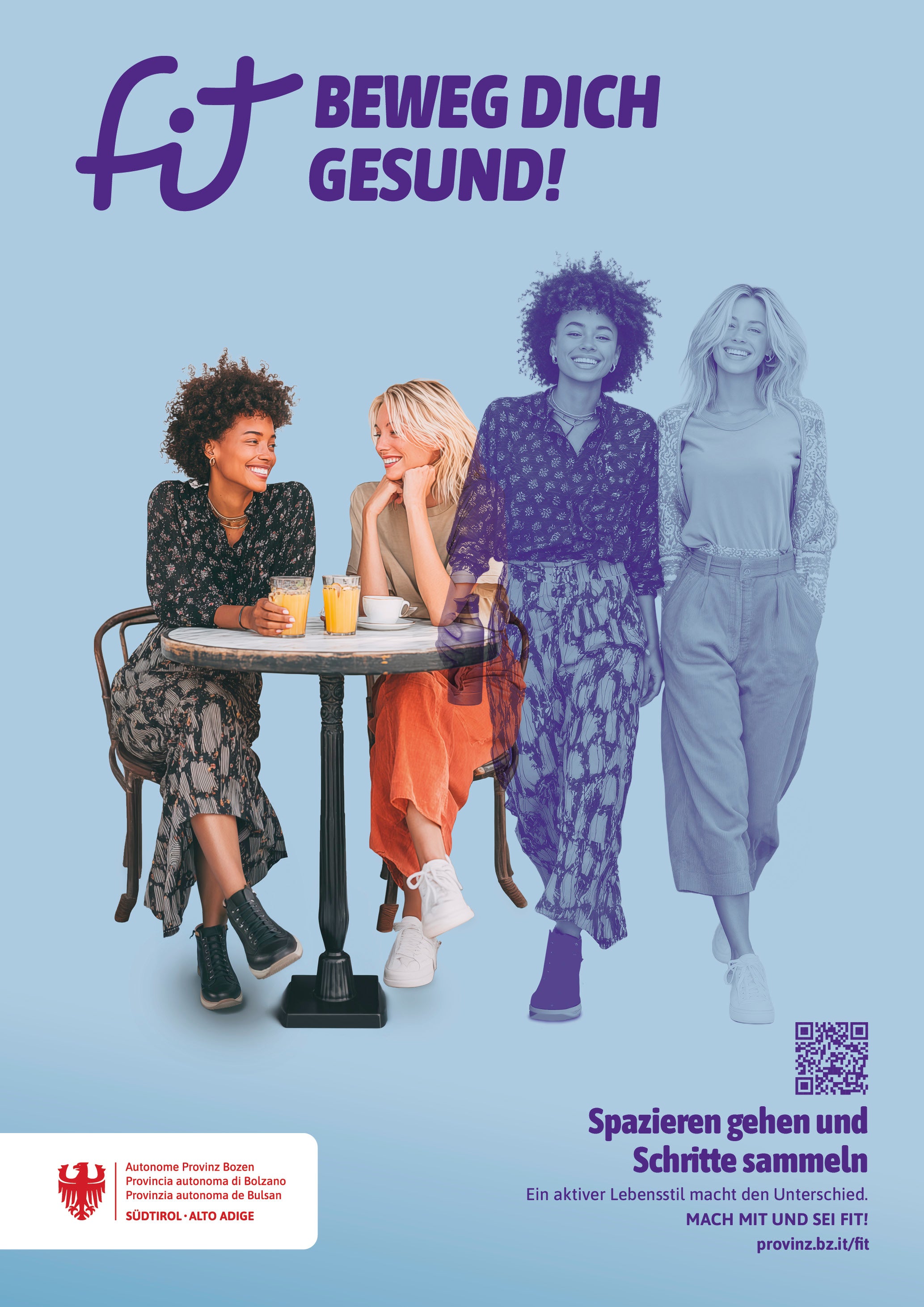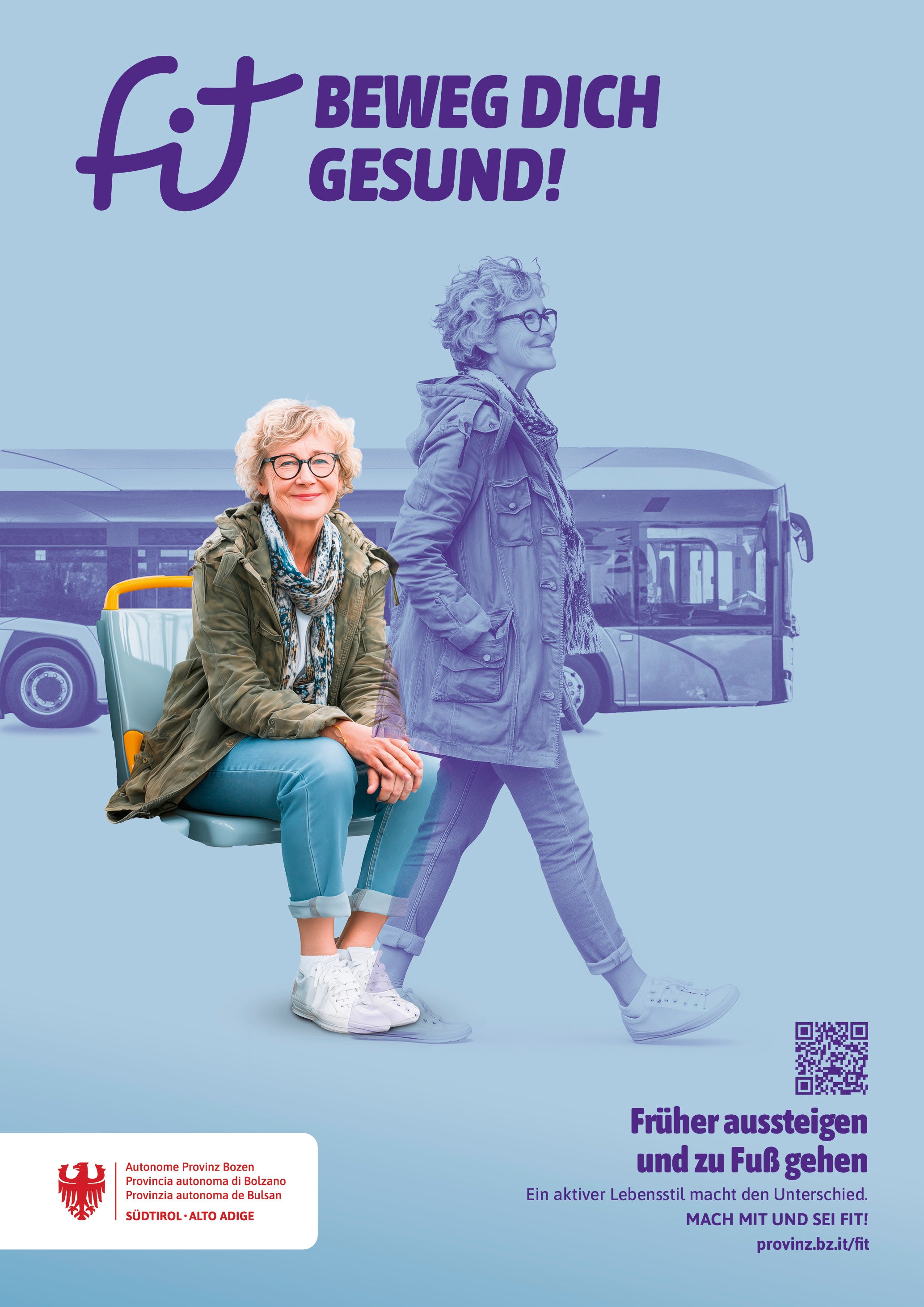 Die Aktion „fit - Beweg dich gesund“ setzt hier an und stellt Ideen vor, wie man ein bisschen mehr Bewegung in seinen Alltag einbauen kann: So können schon 1.000 Schritte mehr am Tag die allgemeine Sterblichkeit um 15 Prozent senken – das entspricht etwa zehn Minuten Gehen.