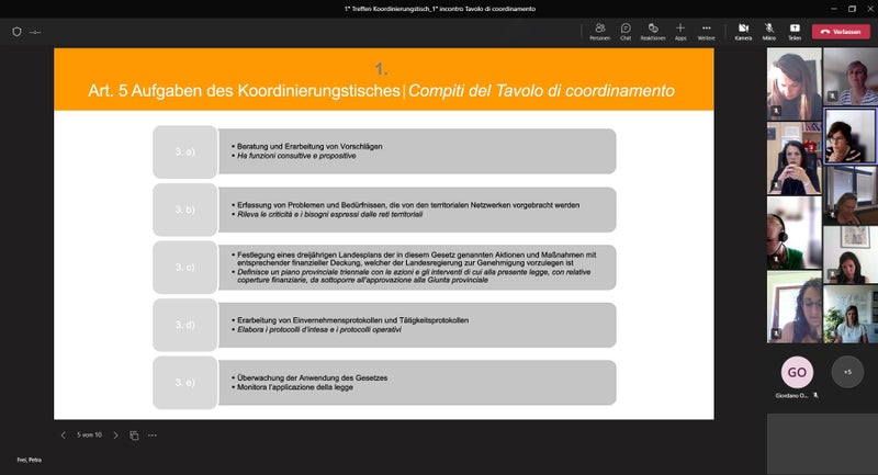 Um Prävention und Bekämpfung geschlechtsspezifischer Gewalt gegen Frauen vernetzt voranzutreiben, wurde durch das Landesgesetz 13/2021 ein ständiger Koordinierungstisch eingesetzt.