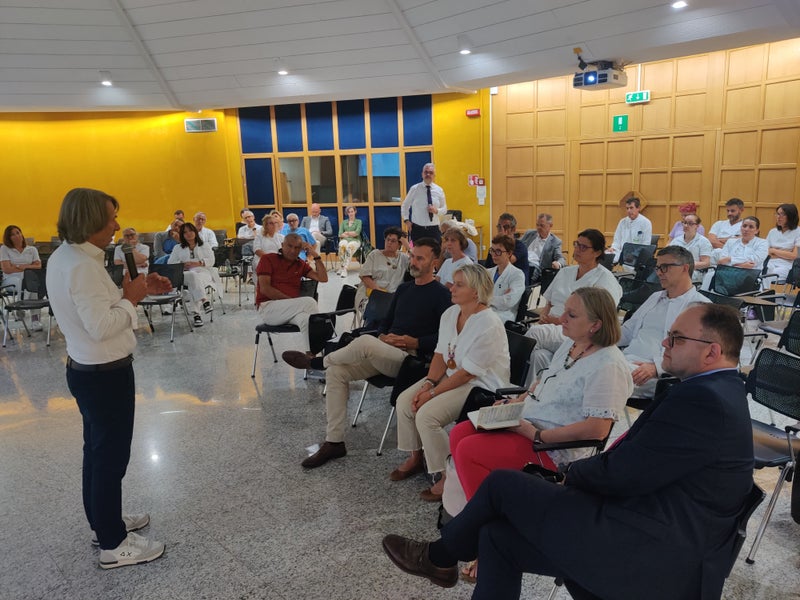 - "Die interdisziplinäre Zusammenarbeit ist der Schlüssel für eine künftige funktionierende und leistbare Gesundheitsbetreuung", betonte Gesundheitslandesrat Hubert Messner beim Gespräch mit den Führungskräften und Mitarbeitenden am Krankenhaus Bozen. (Foto: LPA/Angelika Schrott) » [IMG 1 MB]