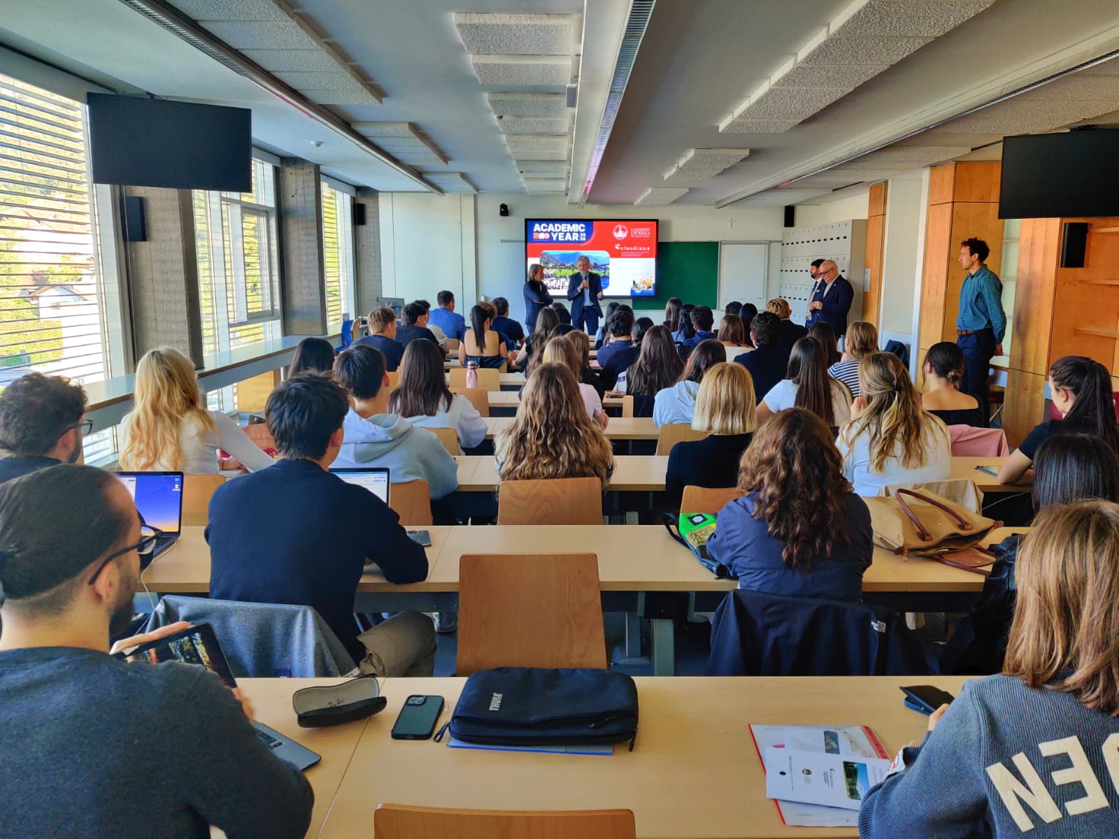 - Das neue Studienjahr des englischsprachigen Medizinstudiengangs "Medicine and Surgery" an der Claudiana in Bozen hat begonnen. Bei der ersten Vorlesung war der Gesundheitslandesrat Hubert Messner mit dabei und begrüßte die Studierenden. (Foto: LPA/Ressort Gesundheitsvorsorge und Gesundheit) » [IMG 182 kB]