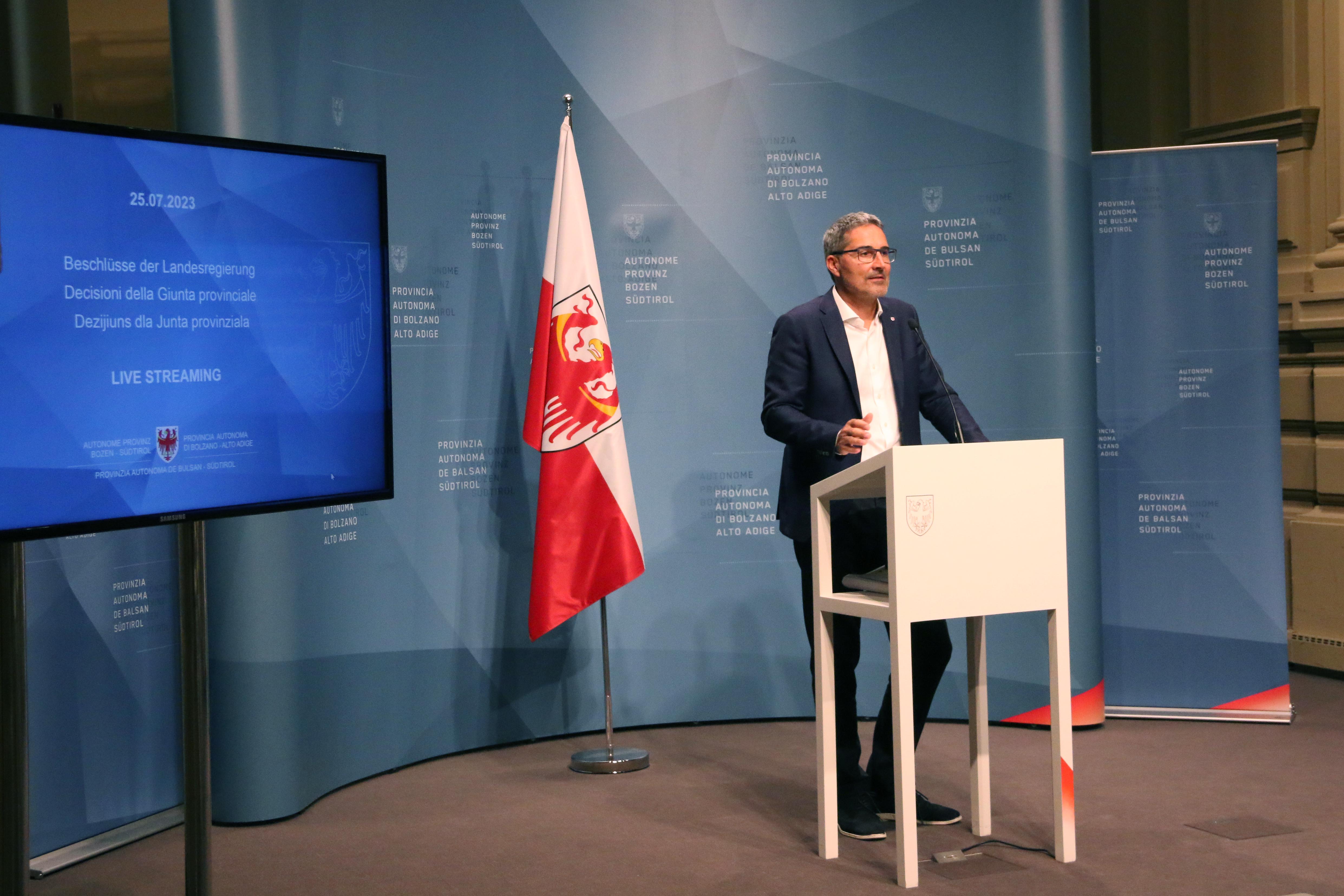 - Die heutige Pressekonferenz, bei der der Landeshauptmann über die wichtigsten Entscheidungen der Landesregierung informiert hat. (Foto: LPA/Laura Hofer) » [IMG 1 MB]